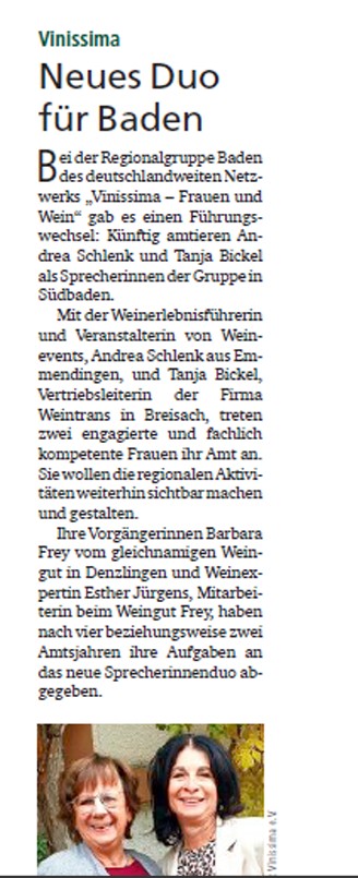 Regionalsprecherin für Baden bei Vinissima Frauen & Wein e.V.